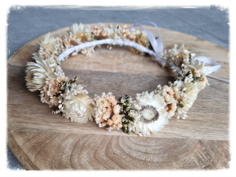 Haarkränze sind sehr beliebt bei Hochzeiten, Kommunionen, Taufen, Jungesellinnenabschiede und Fotoshootings.