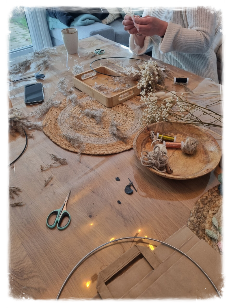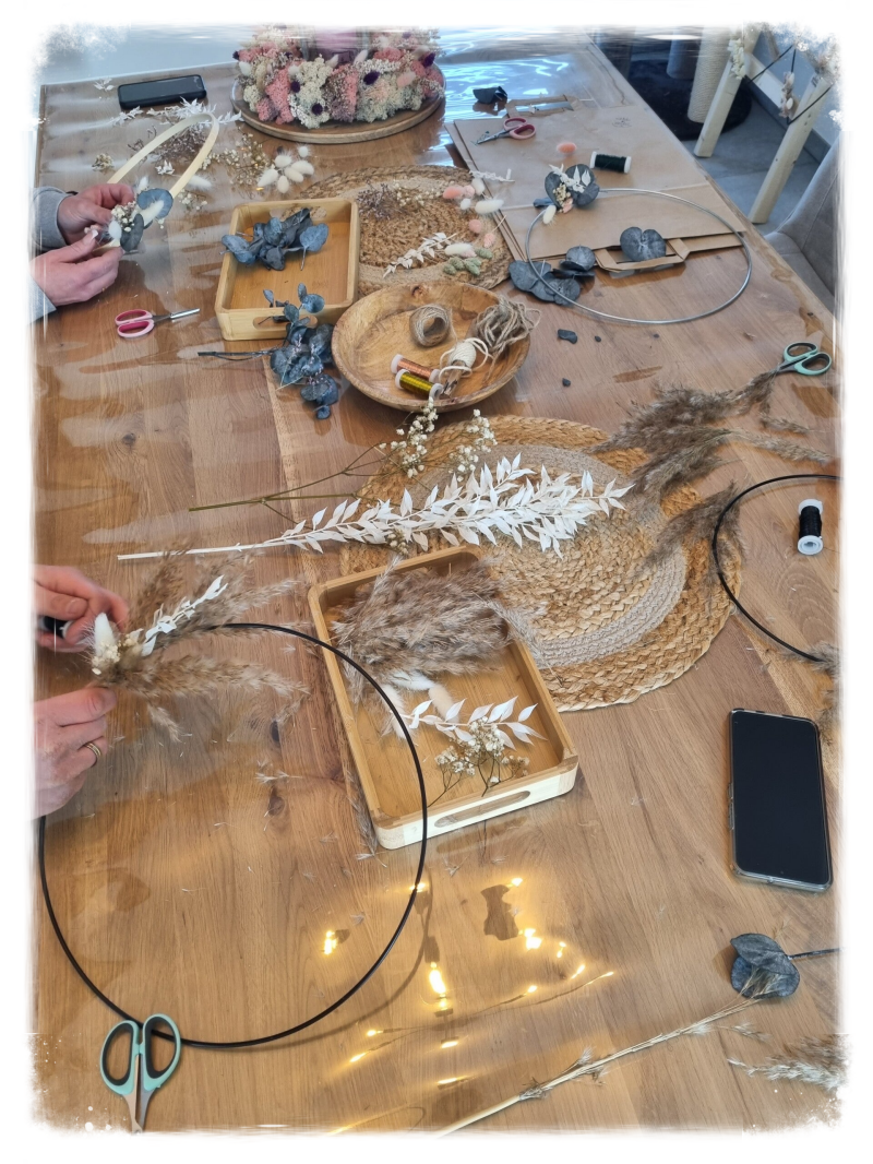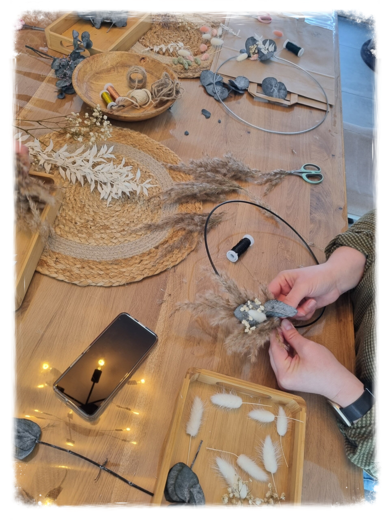 Egal ob Junggesellinnenabschiede, Mädelsabend oder einfach nur für dich selbst kannst du nun unter meiner Anleitung deinen eigenen Trockenblumenkranz oder, je nach Workshop-Thema, auch Haarkranz binden.